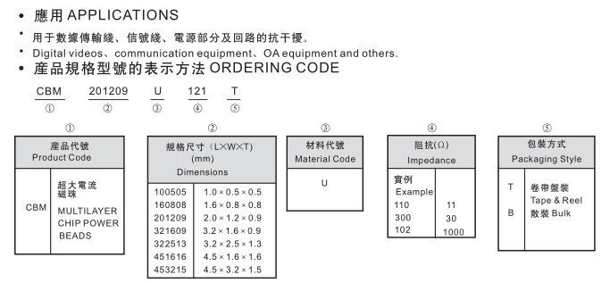 CBM片式磁珠高阻抗,無(wú)引線,符合EIA標(biāo)準(zhǔn)
