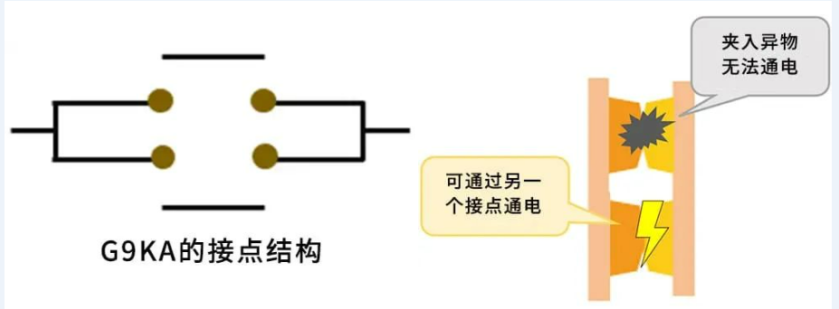 歐姆龍G9KA繼電器低接觸電阻0.2mΩ實(shí)現(xiàn)這個(gè)目標(biāo)所面臨的重大課題之一便是接點(diǎn)上的異物,接點(diǎn)上一旦存在異物則會妨礙電流的通道,從而導(dǎo)致低電阻升高。