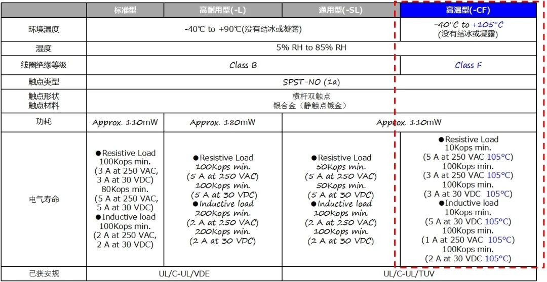 這款繼電器專為高溫應用而設計,能夠在高達105℃的環(huán)境中穩(wěn)定運行。其具備5mm寬度(20×5.08×12.5mm)的緊湊設計,以及5A大分斷性能。此外,這款繼電器憑借僅110mW的線圈功耗,實現(xiàn)了高效節(jié)能。