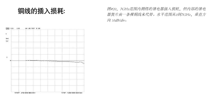 干簧開(kāi)關(guān)的簧片已被一條純銅線所代替比較圖#19和#20兩圖的區(qū)別非常小或幾乎一致。當(dāng)然在傳輸大功率信號(hào)時(shí)還是有些細(xì)微差別的。但我們的許多應(yīng)用的情況下信號(hào)功率都是非常低的因此我們?cè)?GHz之前所存在的差異是可以忽略不計(jì)的。