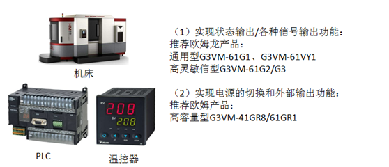 (3)自動化設(shè)備產(chǎn)品應用:比較機床、PLC、溫控器、計時器等,繼電器在產(chǎn)品上起的作用主要為產(chǎn)品狀態(tài)指示、控制照明電源切換等。