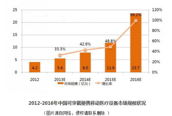 這里我們給大家介紹一款智能手環(huán),配有OMRON高精度氣壓的傳感器(2SMPB),結(jié)合智能手環(huán),可測量和記錄老人的血壓、睡眠、心率等身體健康指標(biāo),自動生成健康報(bào)告,自動發(fā)送給提前預(yù)設(shè)的家人及家庭醫(yī)生,提出健康及飲食建議。如此完美的可穿戴設(shè)備,實(shí)在是讓人無法不愛!在醫(yī)療行業(yè),此類型的可穿戴設(shè)備發(fā)展還呈現(xiàn)上升狀態(tài)!如下圖描述: