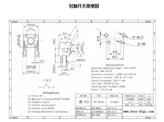 挑選輕觸開關方法二:出廠檢驗的方法和項目也影響最終輕觸開關的品質,比如是外觀、