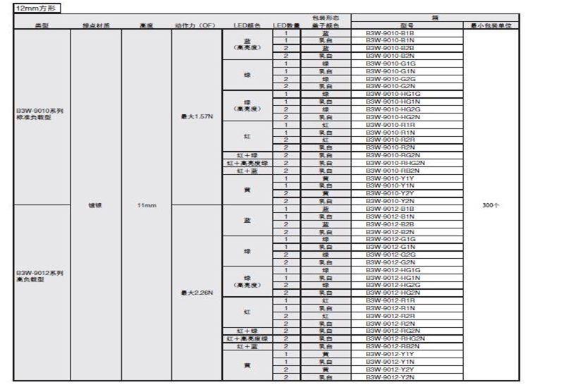 B3W-9000系列 照光式 LED小型帶燈輕觸開關(guān)