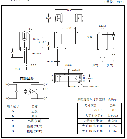 光電IC輸出型微型光電傳感器[透過型] 受光元件與增幅回路內(nèi)置于一個(gè)芯片 受光元件中內(nèi)置有溫度補(bǔ)償回路 適用電源電壓為DC4.5 ~ 16V 可直接連接C-MOS、TTL 高分辨率(狹片寬度 0.5mm) 遮光時(shí)ON型:EE-SX3070