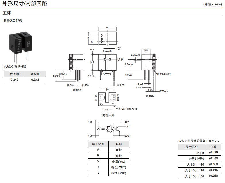 橫向安裝凹槽端子型(槽寬:2mm) 橫向孔徑 印刷線路板用端子 適用電源電壓為 DC4.5~16V 光電IC輸出(入光時ON) 可直接連接 C-MOS