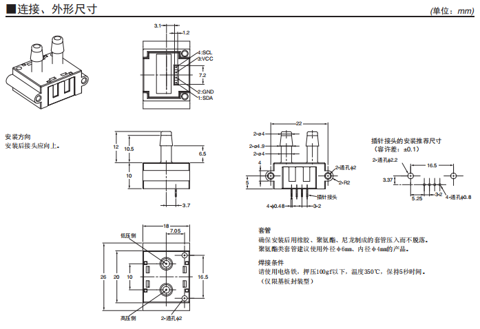 測(cè)量范圍:0~250Pa 小型、高精度、耐環(huán)境性能卓越的差壓傳感器 ±3%RD的高精度。 具備直線補(bǔ)償、溫度補(bǔ)償功能。 數(shù)字輸出(I2C通信)。 高流量阻抗減少旁路配置的影響。